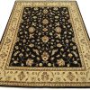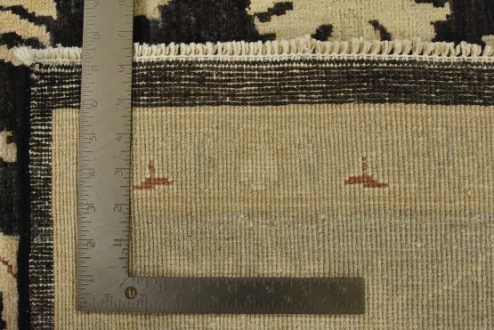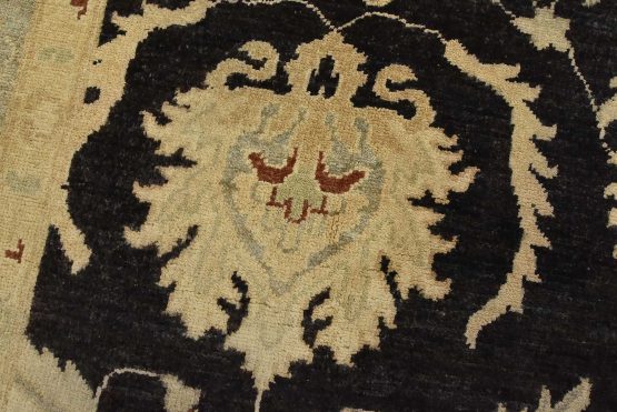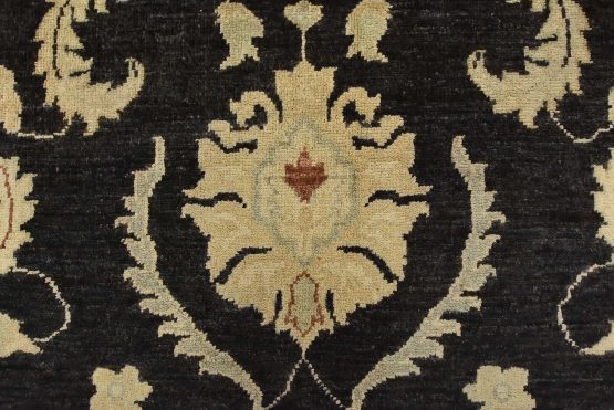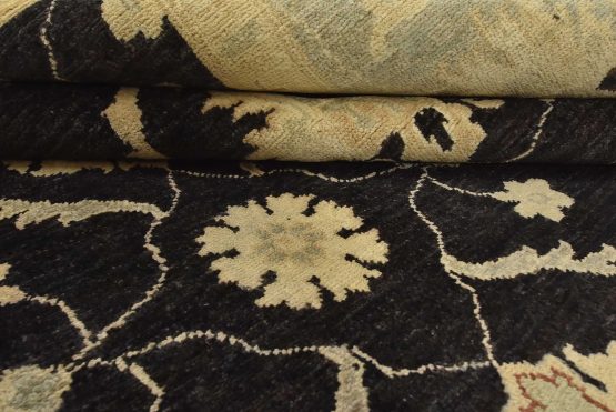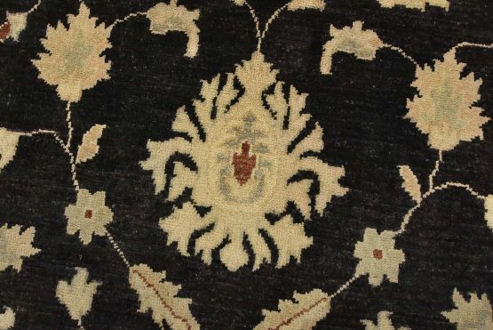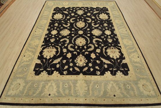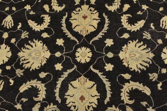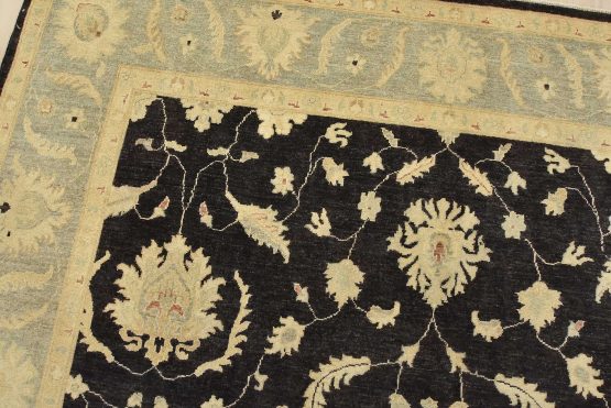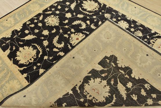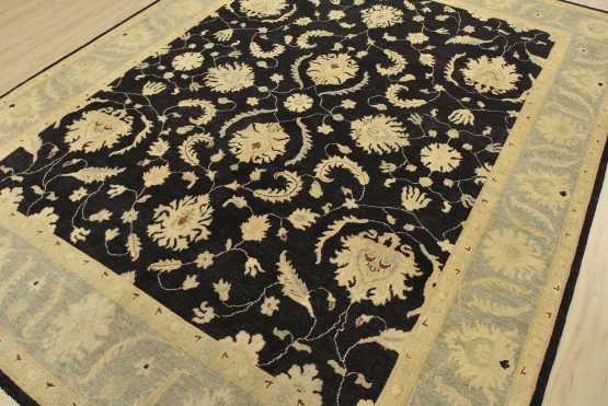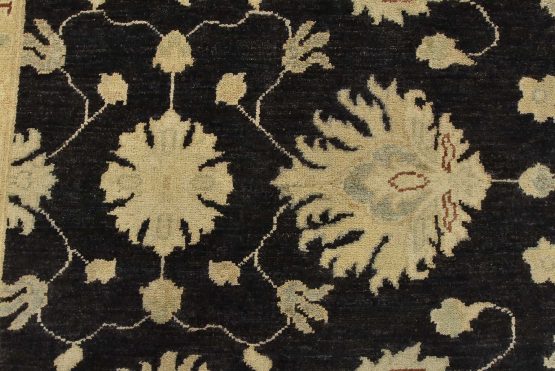 A traditional Ziegler rug hand-knotted with an all-wool pile on a cotton foundation. This oriental rug features an all-over floral design set against a black background. It is new and in excellent condition.