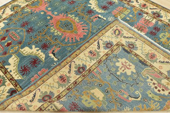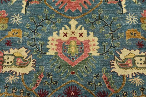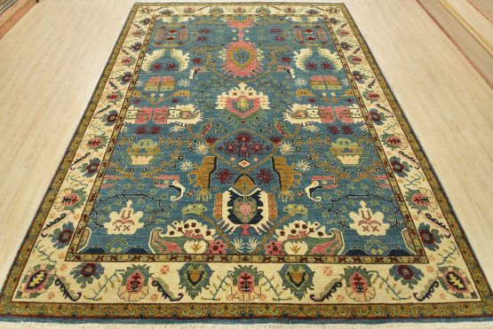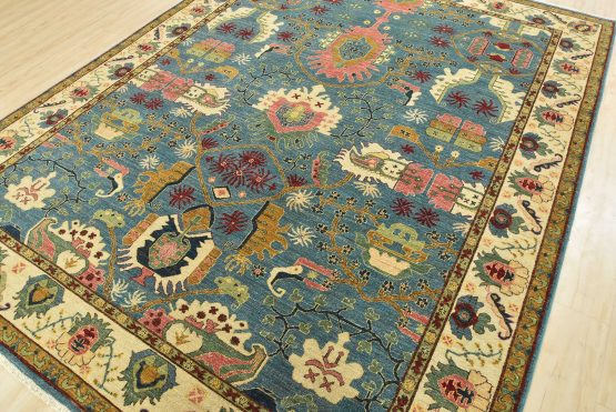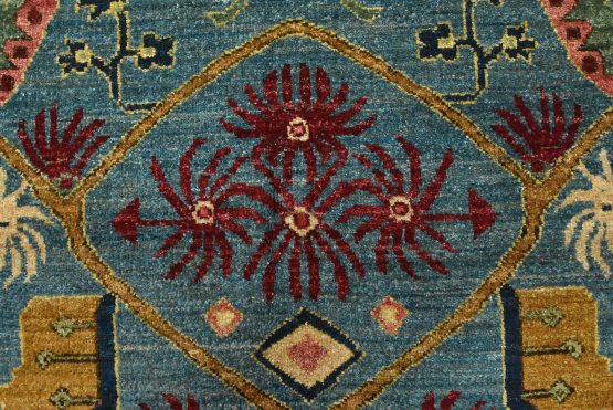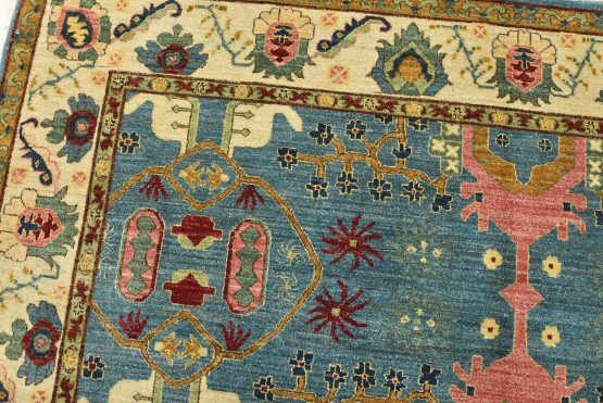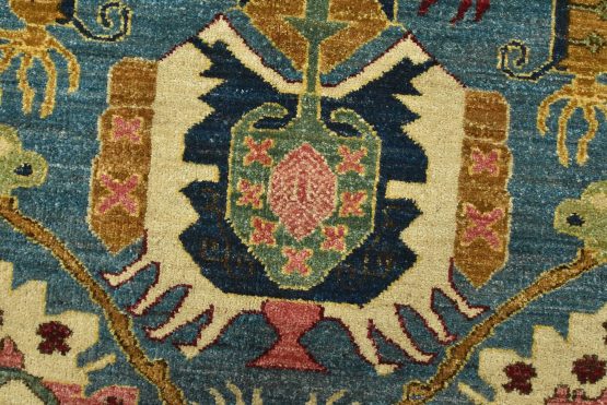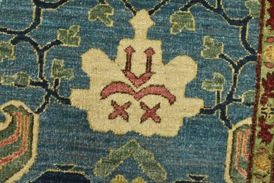 A traditional Ziegler rug hand-knotted with an all-wool pile on a cotton foundation. This finely woven oriental rug features an all-over botanical design set against a blue background. It is new and in excellent condition.