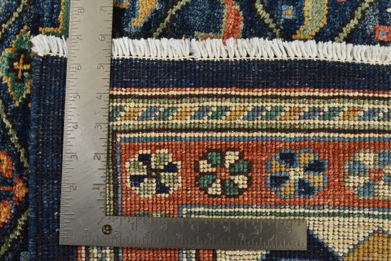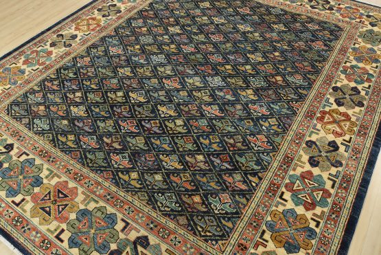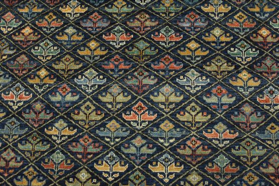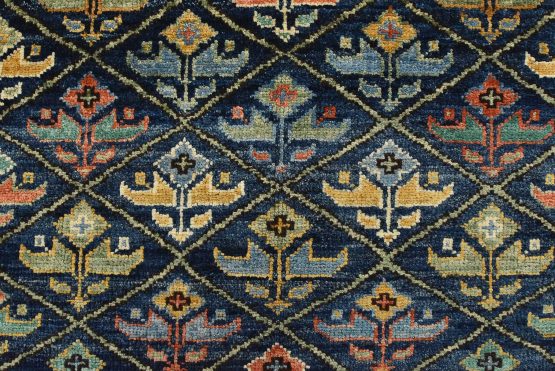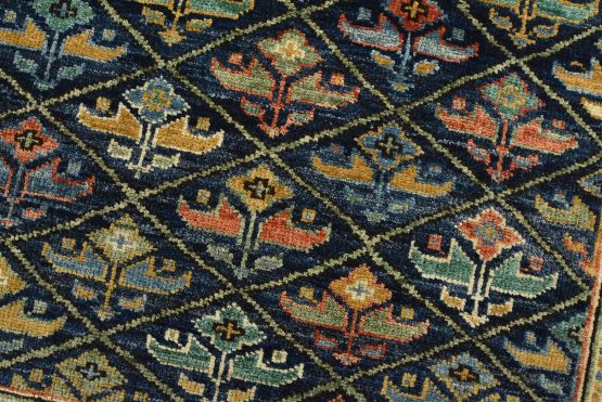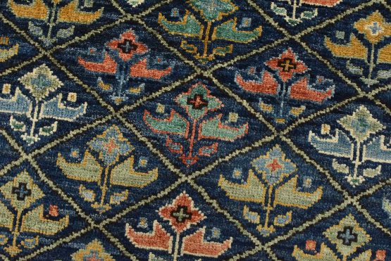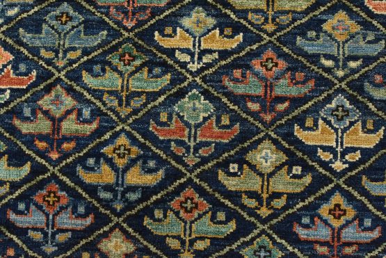 A traditional Ziegler rug hand-knotted with an all-wool pile on a cotton foundation. This finely woven oriental rug features an all-over geometric botanical pattern set against a blue background. It is new and in excellent condition.