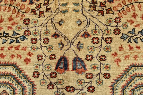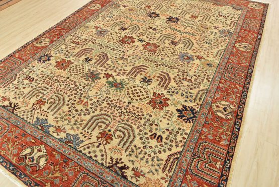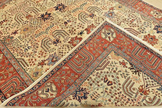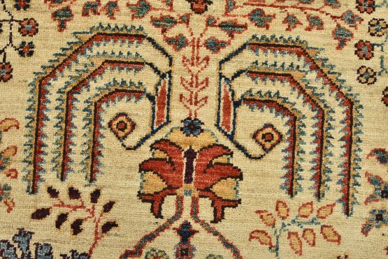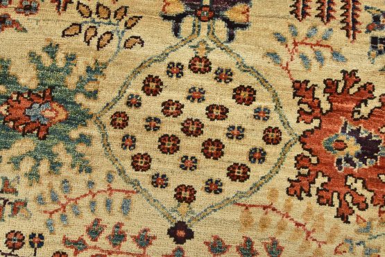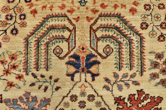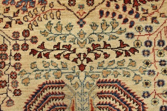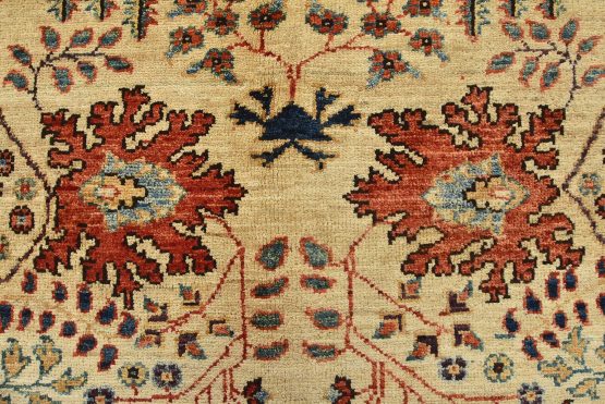 A traditional Ziegler rug hand-knotted with an all-wool pile on a cotton foundation. This finely woven oriental rug features an all-over botanical design set against a beige background. It is new and in excellent condition.