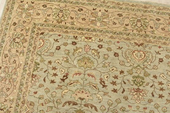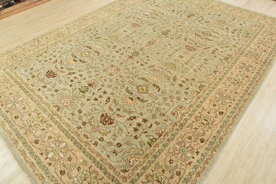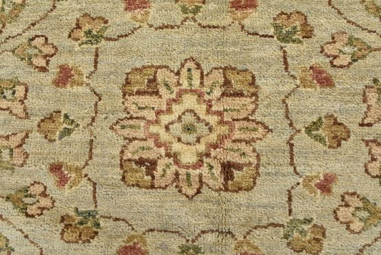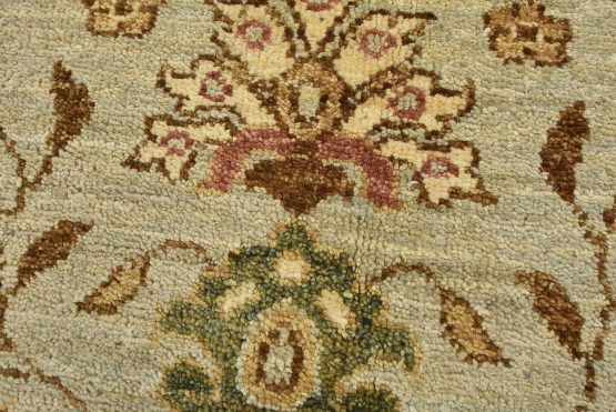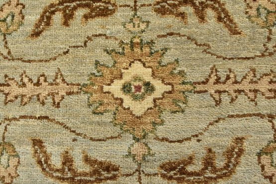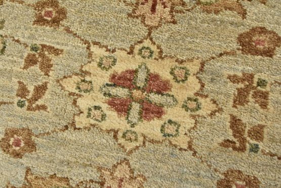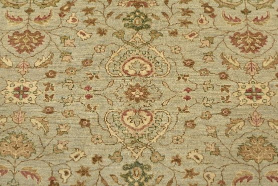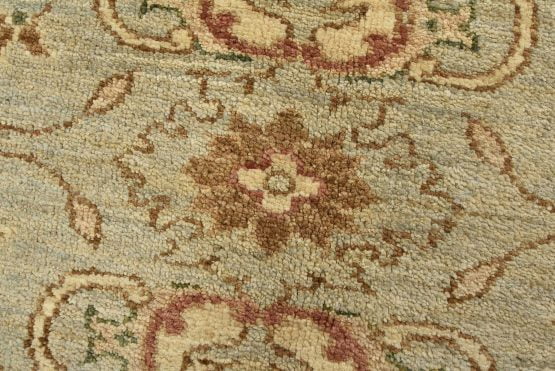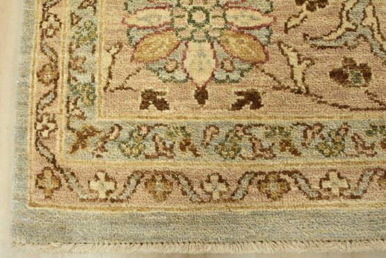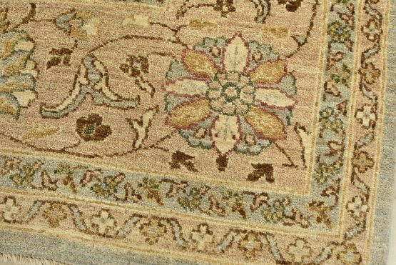 A traditional Ziegler rug hand-knotted with an all-wool pile on a cotton foundation. This oriental rug features a subtle all-over botanical design set against a light blue background. It is new and in excellent condition.