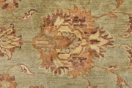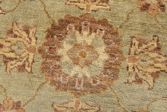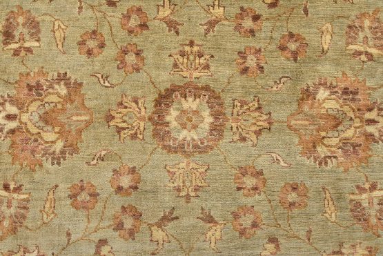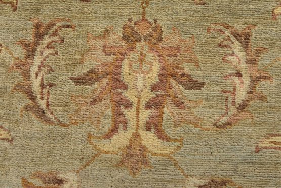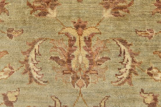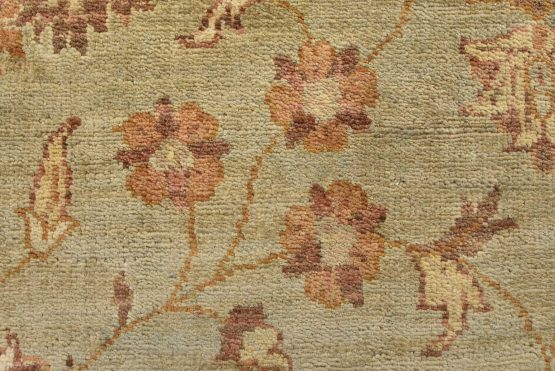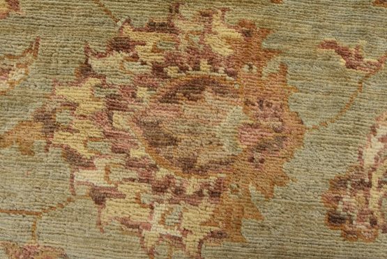 A traditional Ziegler rug hand-knotted with an all-wool pile on a cotton foundation. This oriental rug features a subtle all-over floral design set against a gray background. It is new and in excellent condition.