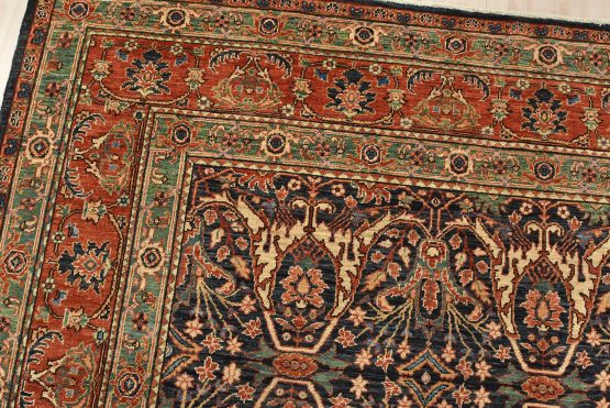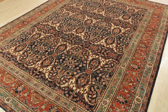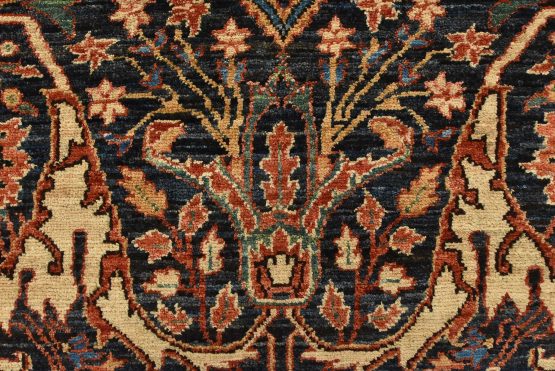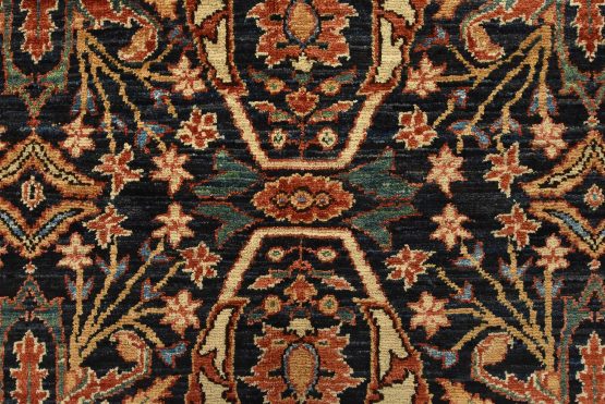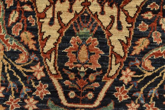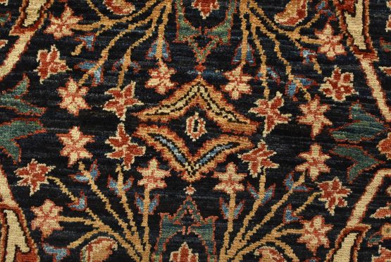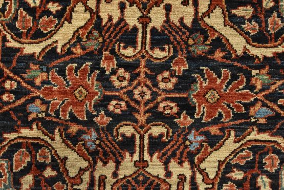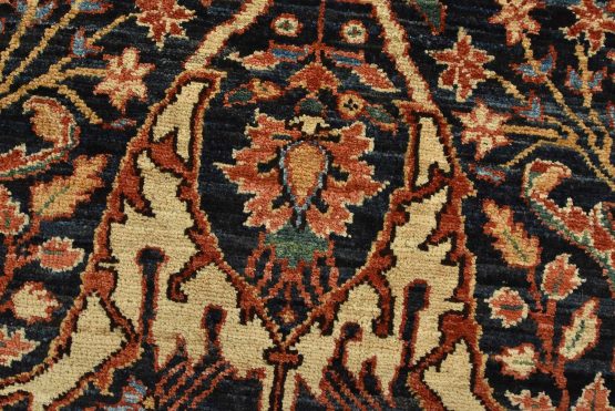 A traditional Ziegler rug hand-knotted with an all-wool pile on a cotton foundation. This finely woven oriental rug features an all-over botanical design set against a dark blue background. It is new and in excellent condition.