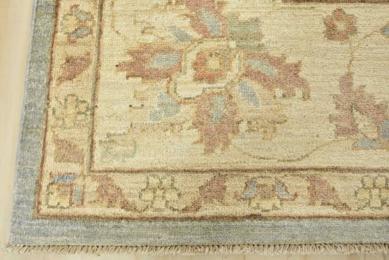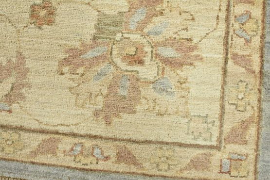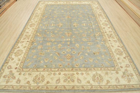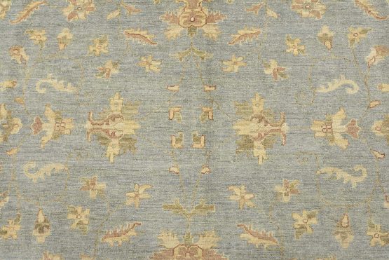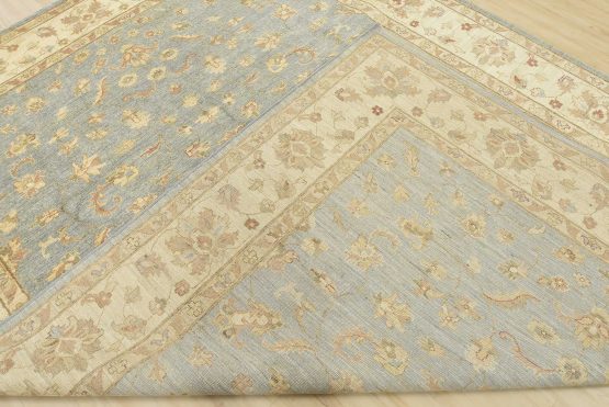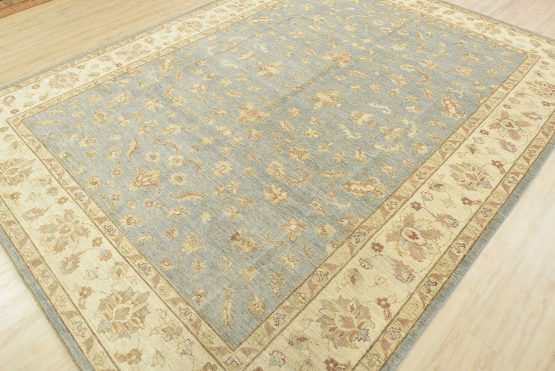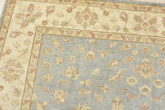 A modern traditional Ziegler rug hand-knotted with an all-wool pile on a cotton foundation. This oriental rug features a subtle all-over botanical design set against a light blue background. It is new and in excellent condition.