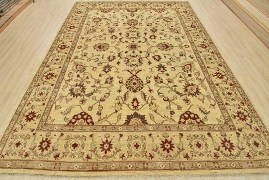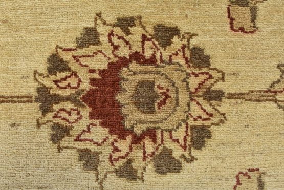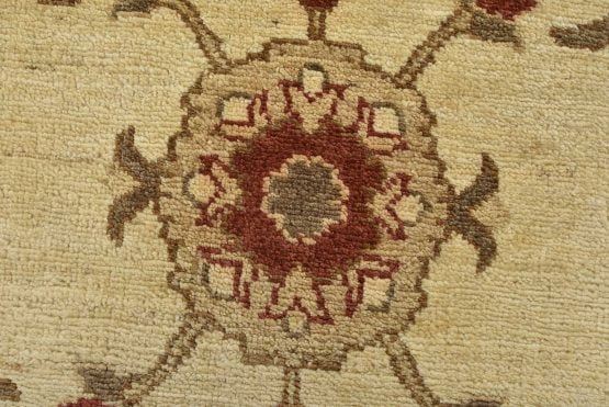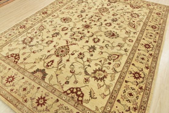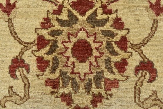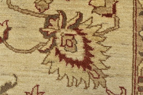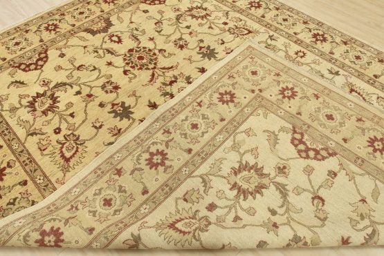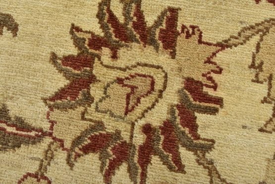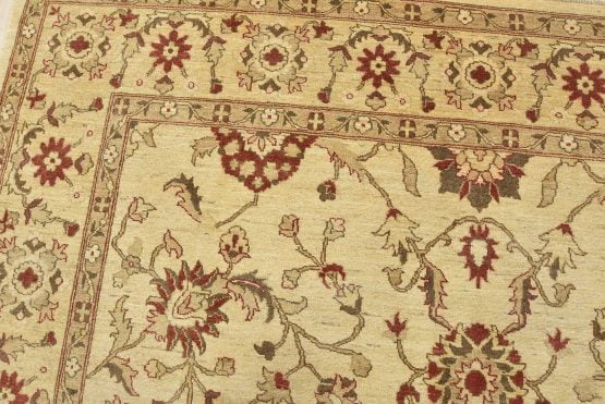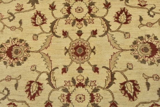 A traditional Ziegler rug hand-knotted with an all-wool pile on a cotton foundation. This oriental rug features an all-over floral design set against a beige background. It is new and in excellent condition.