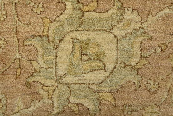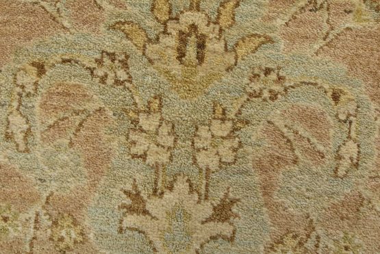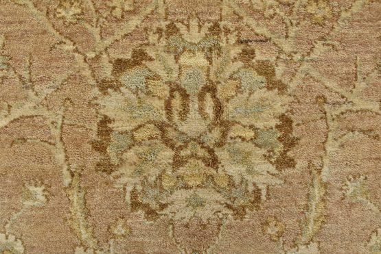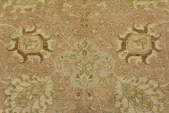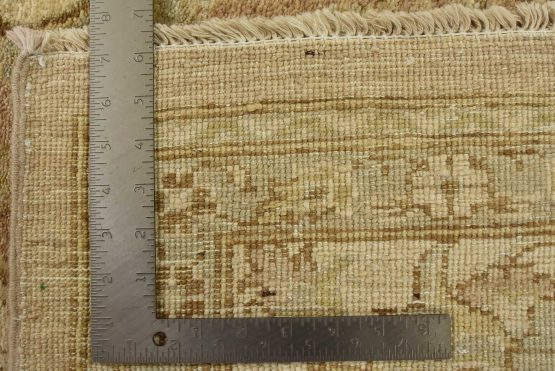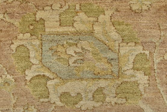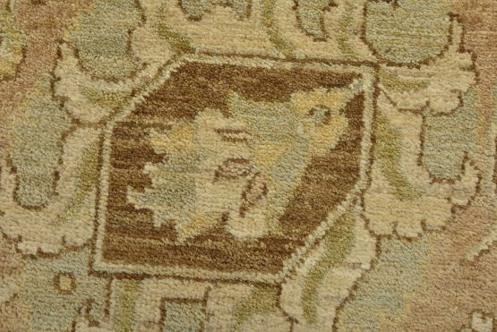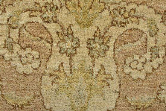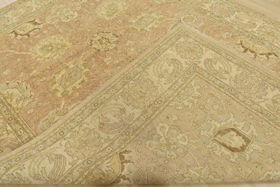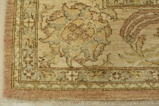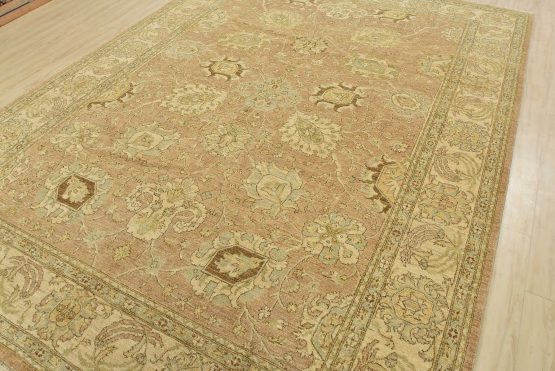 A traditional Ziegler rug hand-knotted with an all-wool pile on a cotton foundation. This oriental rug features a muted all-over floral pattern set against a beige background. It is new and in excellent condition.
