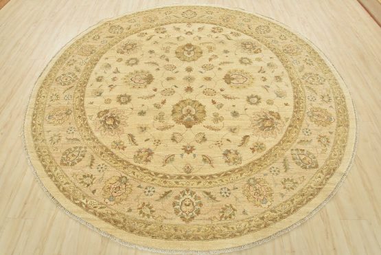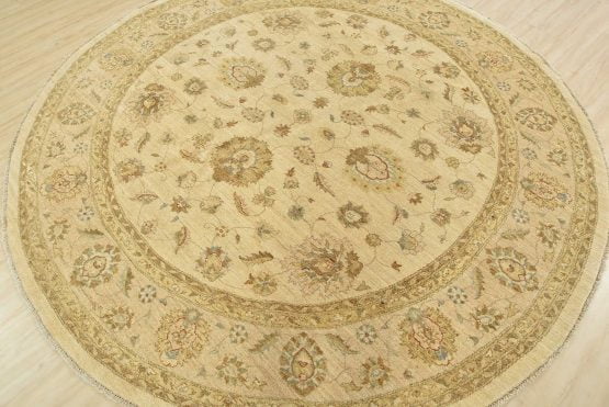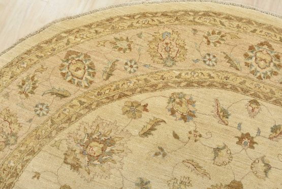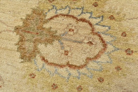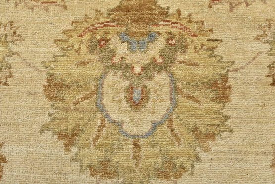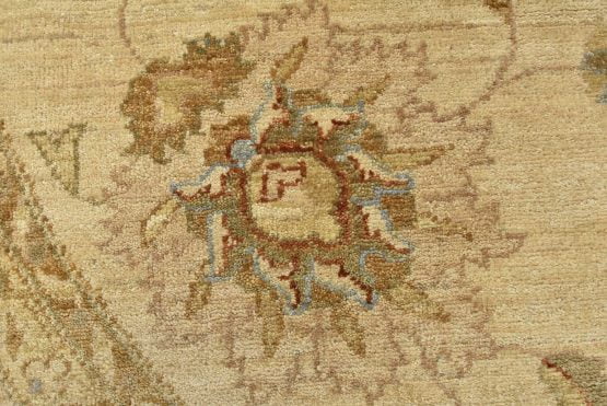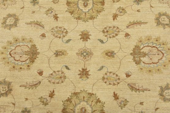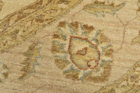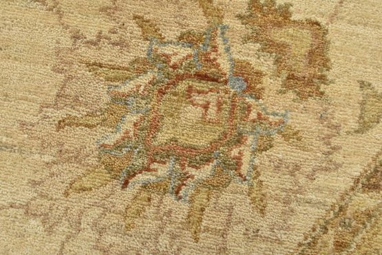 A traditional Ziegler rug hand-knotted with an all-wool pile on a cotton foundation. This oriental rug features a muted all-over floral design set against a beige background. It is new and in excellent condition.