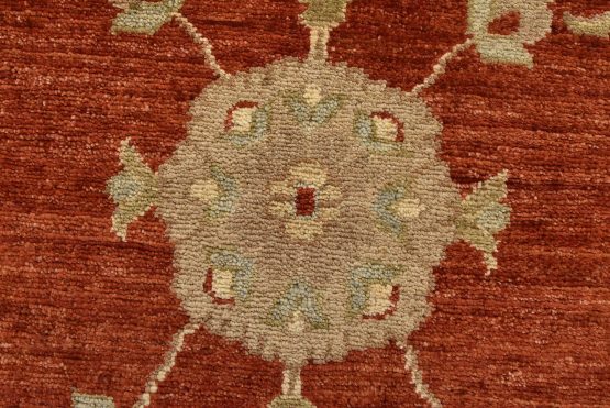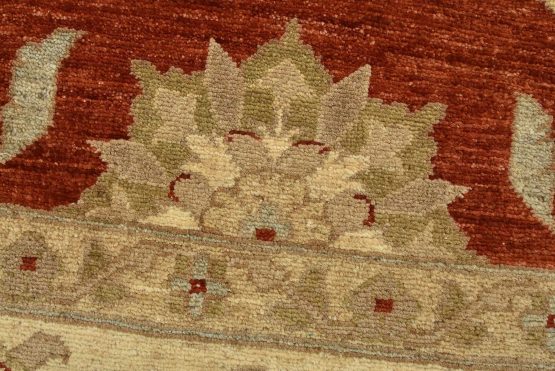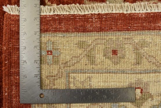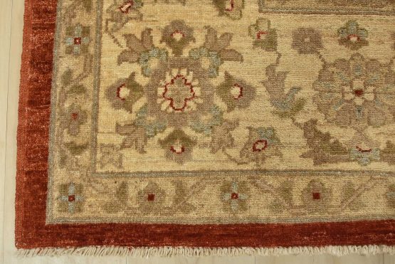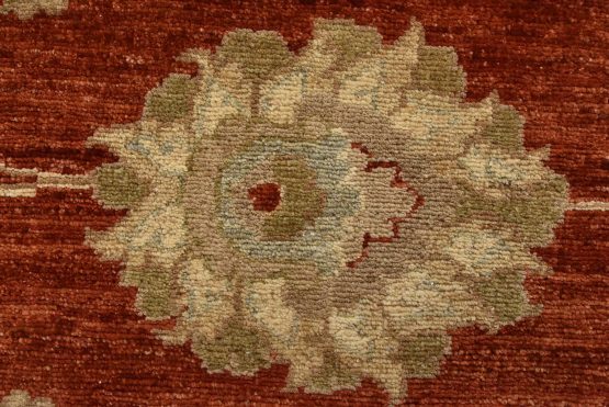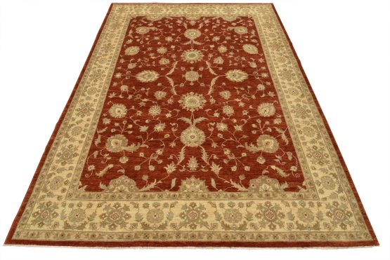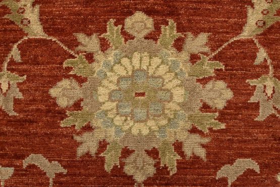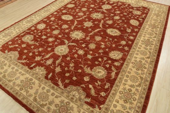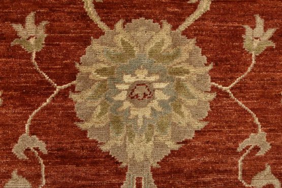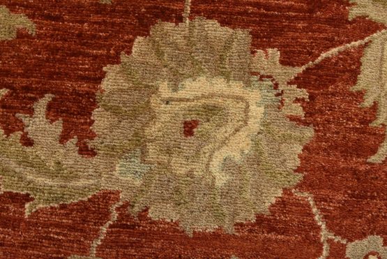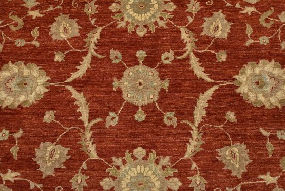 A traditional Ziegler rug hand-knotted with an all-wool pile on a cotton foundation. This oriental rug features an all-over floral design set against a red background. It is new and in excellent condition.