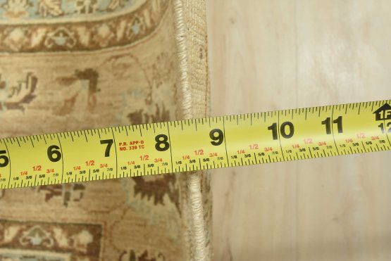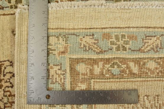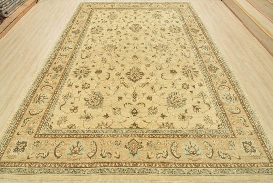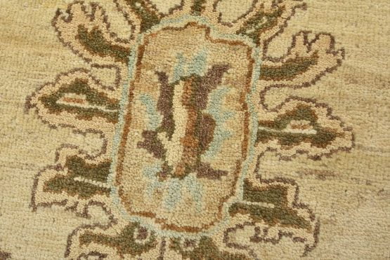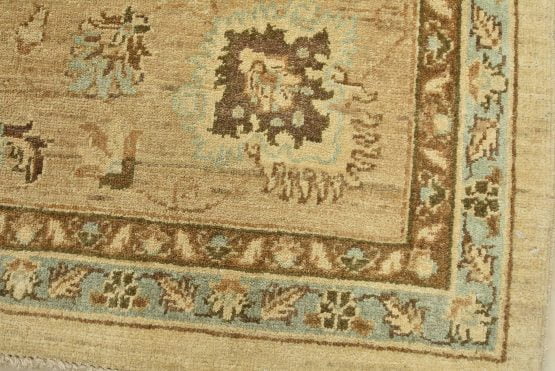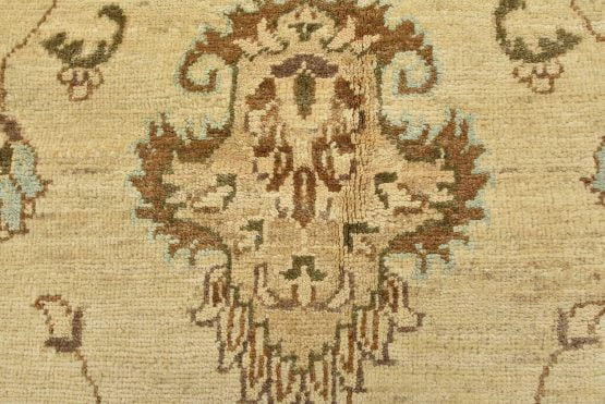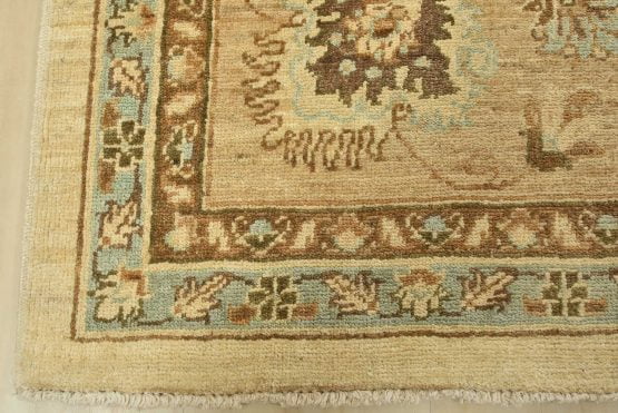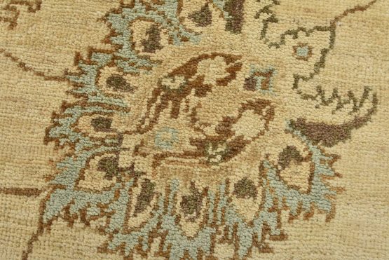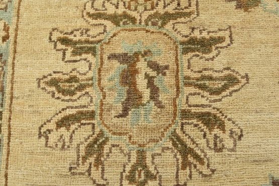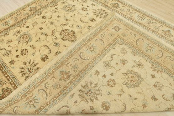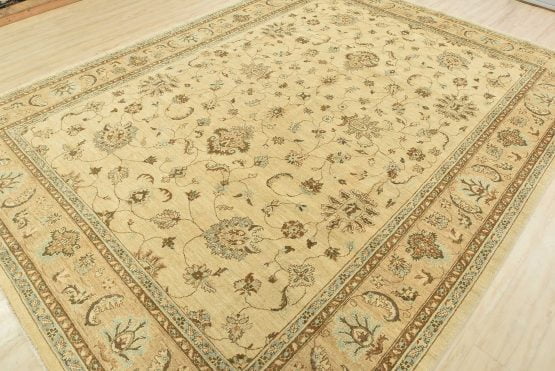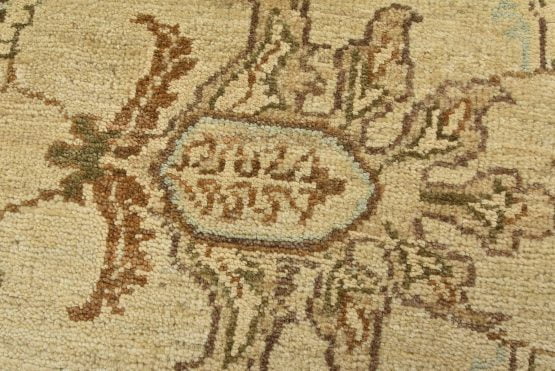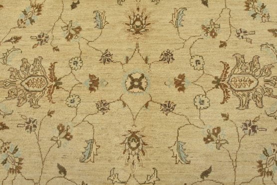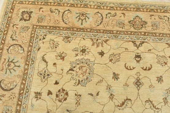 A traditional Ziegler rug hand-knotted with an all-wool pile on a cotton foundation. This oriental rug features a subtle all-over botanical design set against a beige background. It is new and in excellent condition.