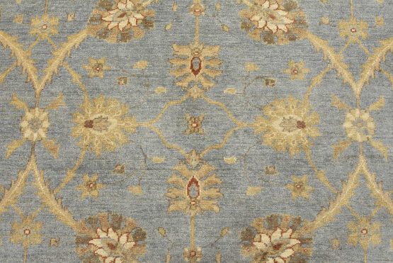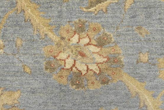 A traditional Ziegler rug hand-knotted with an all-wool pile on a cotton foundation. This oriental rug features an all-over floral design set against a light blue background. It is new and in excellent condition.