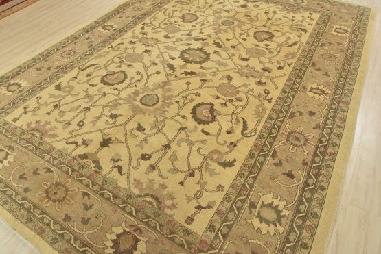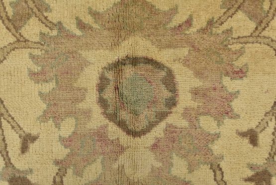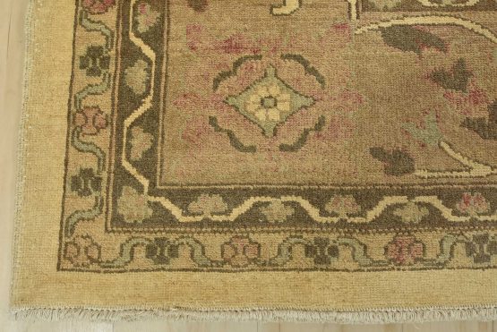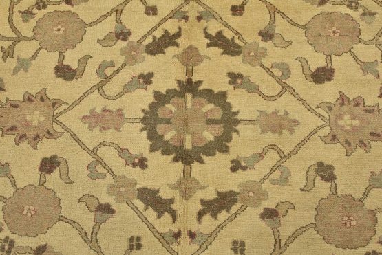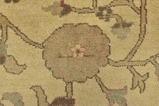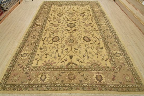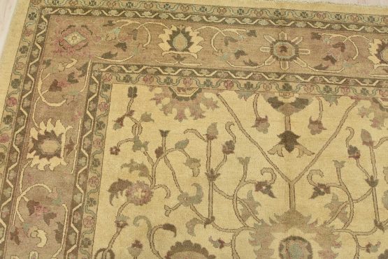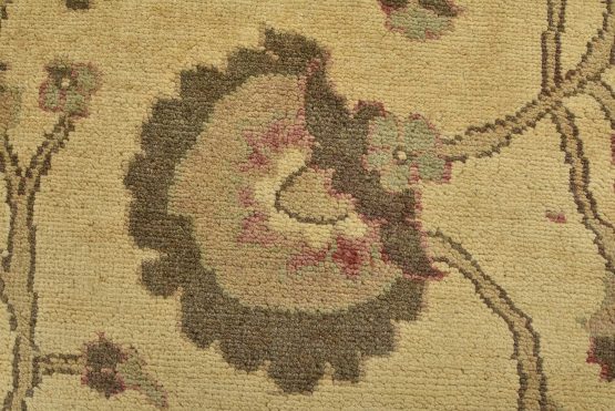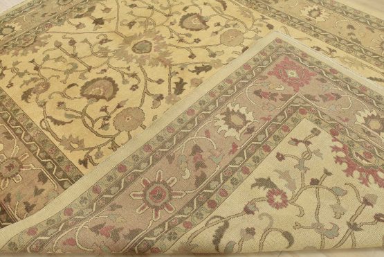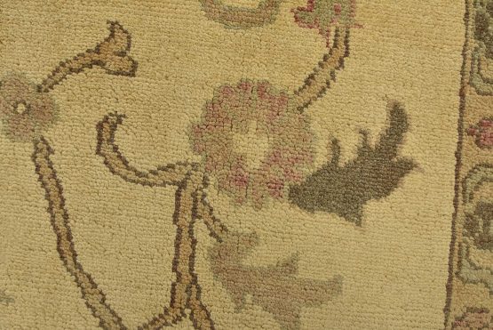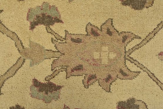 A traditional Ziegler rug hand-knotted with an all-wool pile on a cotton foundation. This oriental rug features an all-over botanical design set against a beige background. It is new and in excellent condition.
