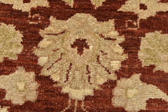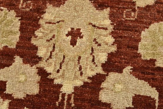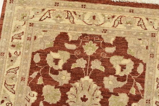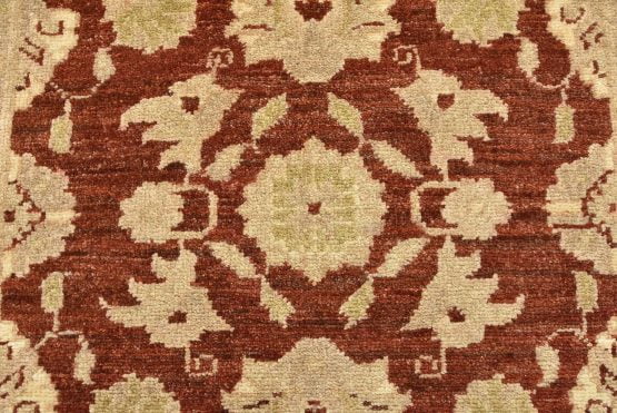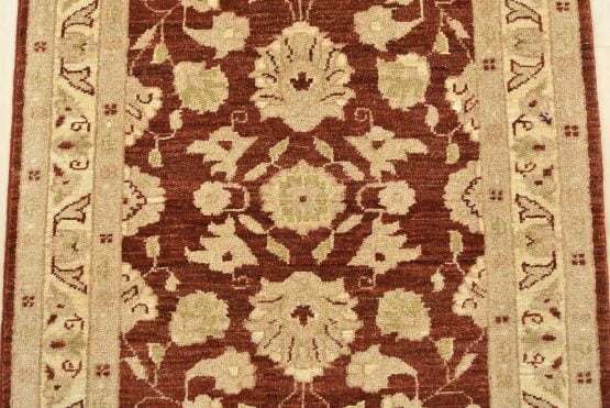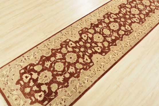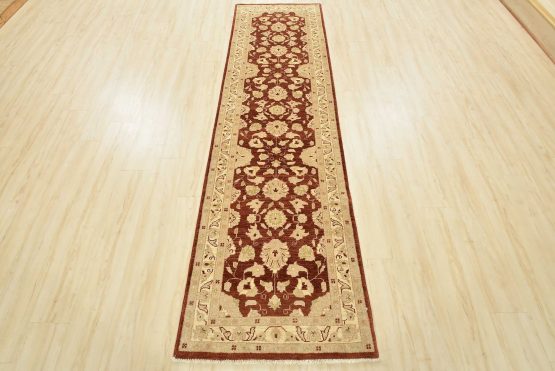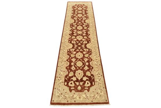 A traditional Ziegler runner hand-knotted with an all-wool pile on a cotton foundation. This oriental rug features a floral design set against a red background. It is new and in excellent condition.